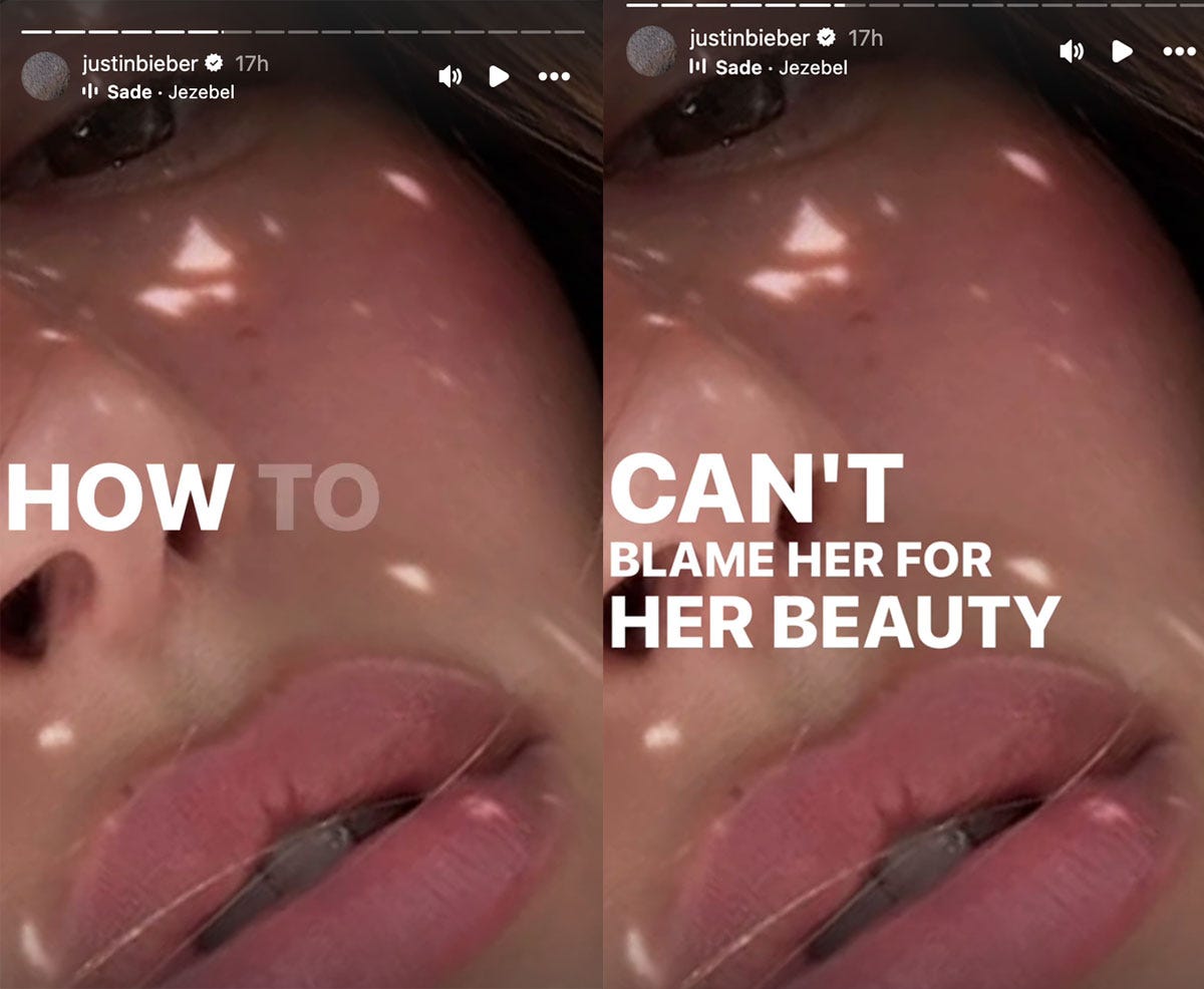 followed by a closeup pic of Hailey, with lyrics over her to the Sade song “Jezebel.”